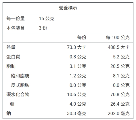 成分:米、三溫糖、芝麻、棕櫚油、鹽